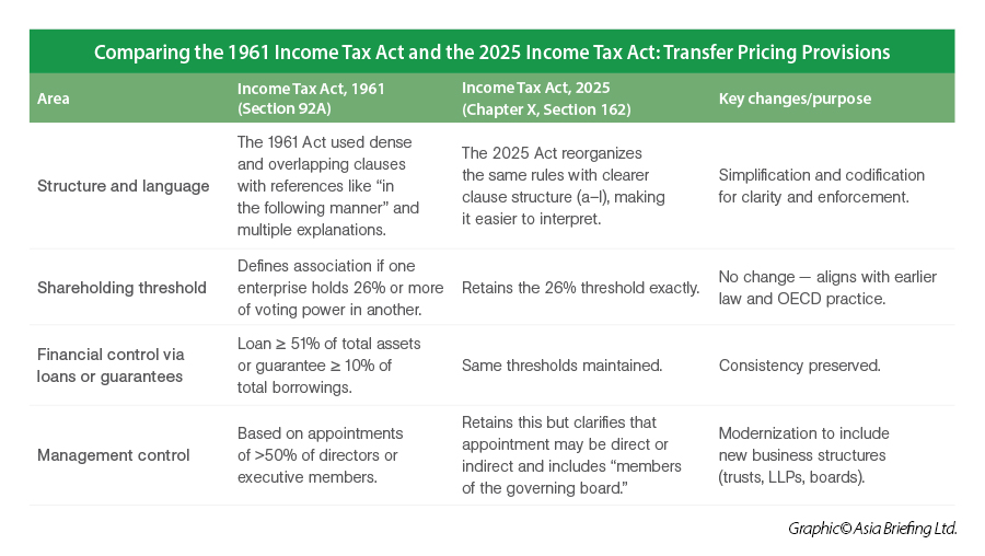 Currently governed by Sections 92A–92F of the Income-tax Act, 1961 and related rules, the TP framework will be reorganized under Chapter 10 of the Income Tax Act, 2025, effective April 1, 2025. While the definition of “associated enterprises” remains largely unchanged, the new law strengthens alignment with OECD principles and expands coverage to address modern business models, including digital assets, platform economies, and innovative financing structures.